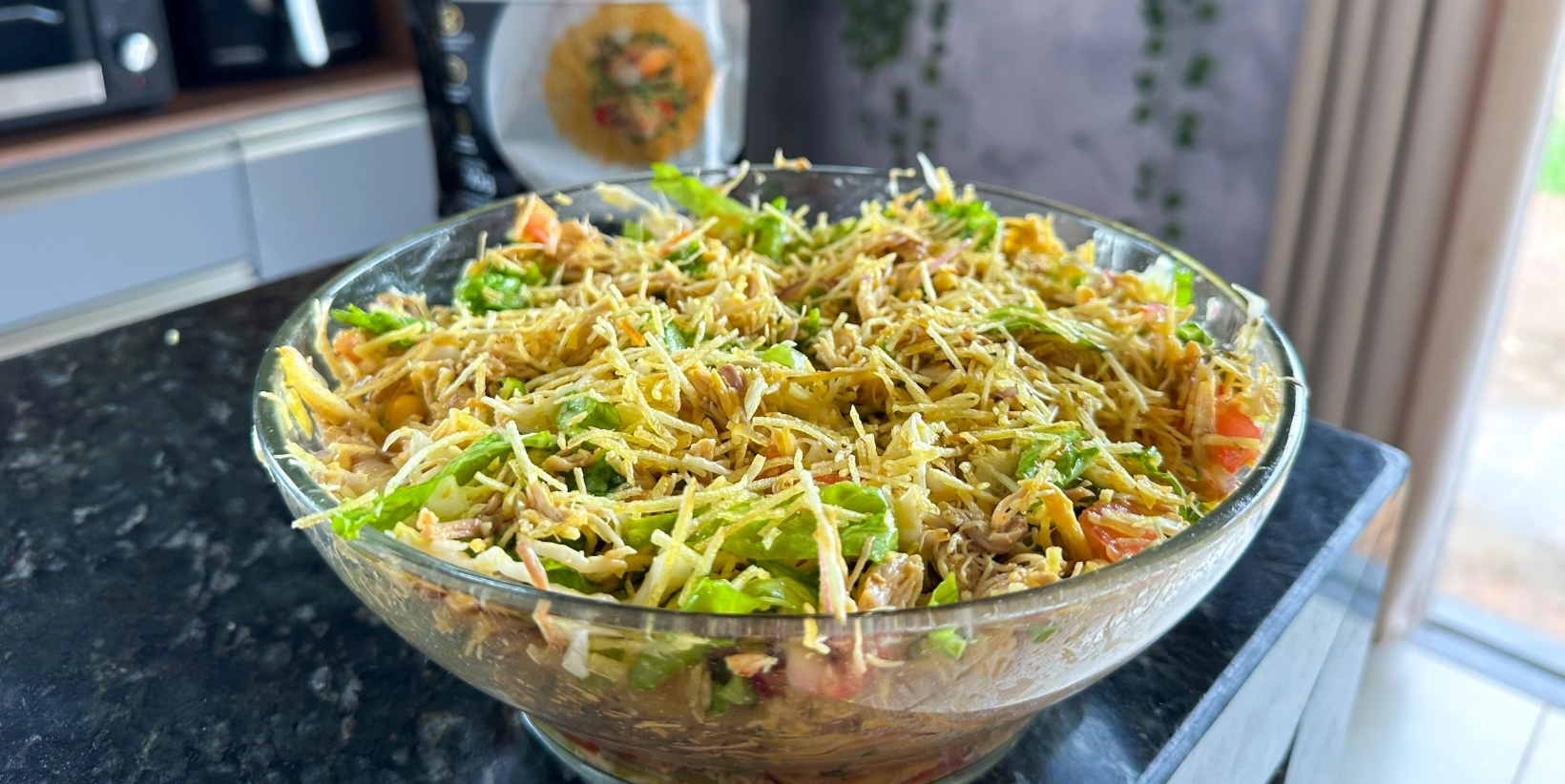 Essa sala é uma refeição leve, mas que não abre mão da textura. Além de ser colorida, completa, é finalizada com a Batata Palha Extrafina Croques que transforma tudo. O molho traz também o equilíbrio para dias quentes. Clique aqui e veja a receita completa!