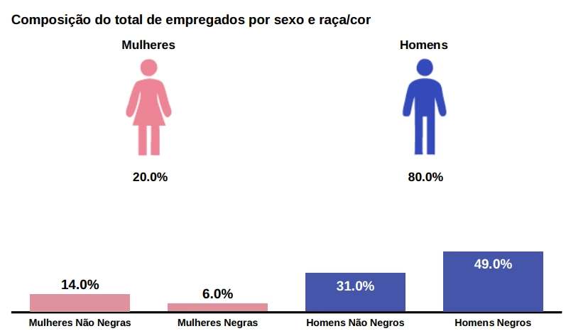Atualmente, nosso quadro de funcionários é composto por 14% de mulheres não negras e 6% de mulheres negras. A composição de homens não negros é de 31% e de homens negros é de 49%. Reconhecemos que há espaço para avançarmos na inclusão e, por isso, seguimos investindo em ações afirmativas para ampliar essa representatividade.